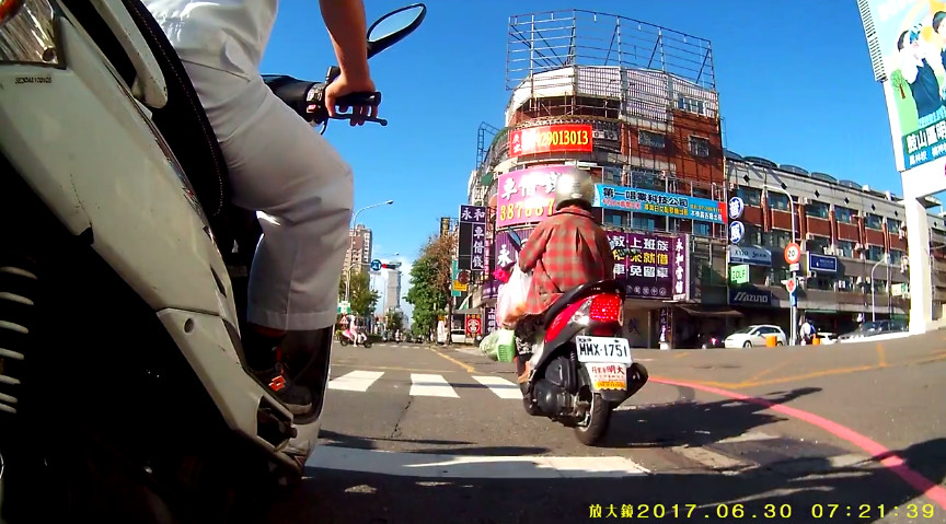 有網友在臉書分享一段行車紀錄器影片,指畫面中的阿桑起初紅燈右轉,進了右邊街道。當下網友不以為意,繼續往前騎,豈料阿桑卻莫名現身在下一個路口,宛如「瞬間移動」,讓他完全摸不著頭緒。結果影片PO上網後,立刻有眼尖網友知曉真相,為原PO解答。