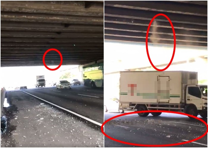 國道1號北上42k+200上方2日上午10時32分,林口交流道跨越橋有石塊掉落至國道主線,影響行車並砸傷6車輛,包括5輛自小客車及1輛國光客運,路過民眾突然遭重擊,嚇一大跳,每一台都驚呼連連「啊!那什麼啊」、「啊啊啊,難怪那麼多車停路邊」。