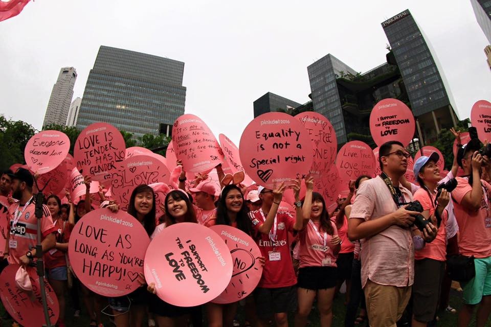 自2009年首次舉辦以來,每年在公園舉行的「粉紅點」遊行,多年人數都大幅成長,但今年在新法規下,外國團體或個人都不能參加,導致參加人數首次下降,主辦單位表示,以往有2萬5千人以上參與,而今年只有2萬民新加坡居民參加活動。