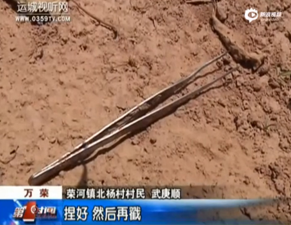 山西省萬榮縣榮河鎮38歲男子武庚順深夜在野外抓蠍子時,不慎掉入8公尺深的枯井,在呼救無效的困境中,他最後利用一把16公分左右的小鑷子挖洞三天三夜,最後成功脫險;在受困期間,他沒有吃過任何東西,僅靠著自己的小便維持水分。