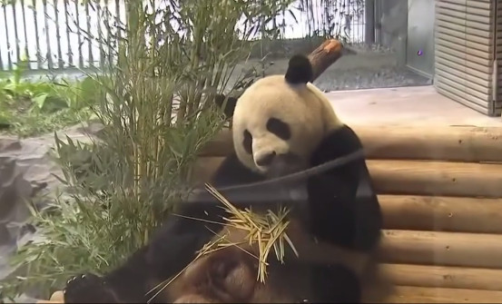 ▲萌呆的大貓熊「夢夢」開心的吃竹子、餅乾。 (圖/路透社)