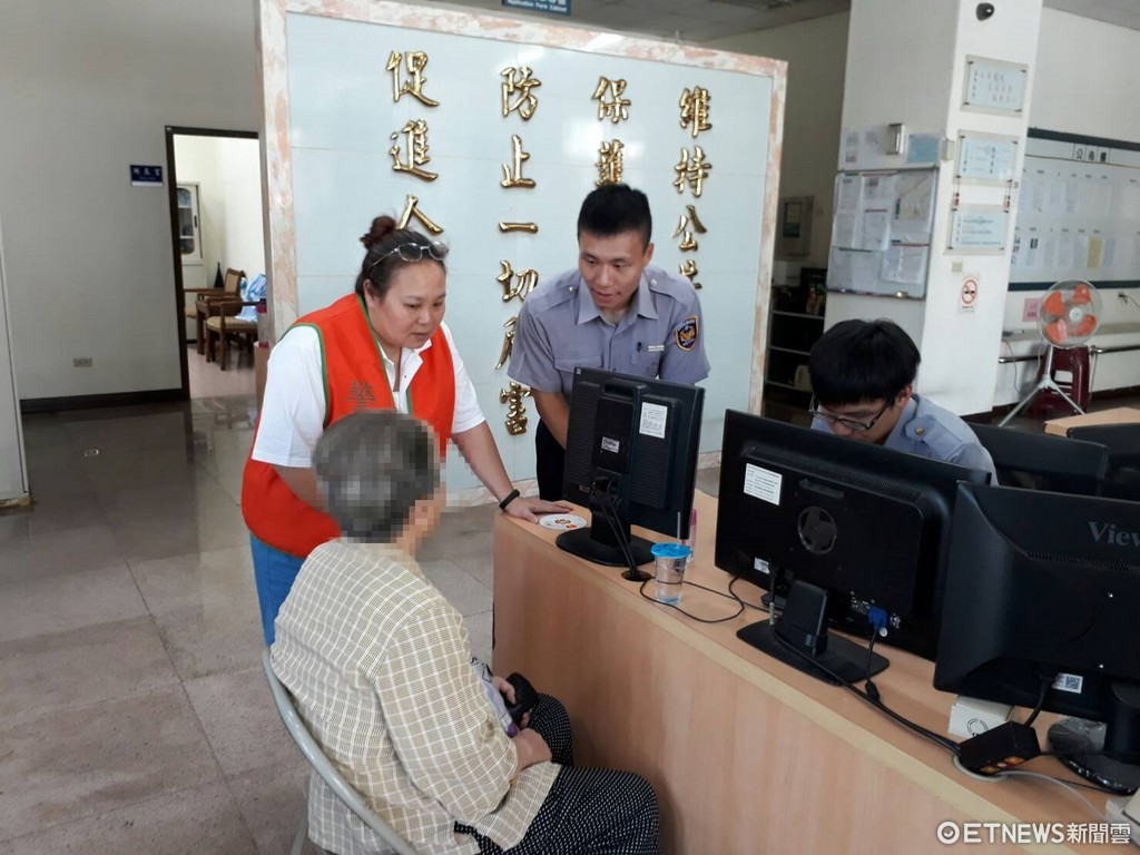 警員李庭岳與警專實習生黃志偉了解原委後,先與志工媽媽安撫阿嬤情緒,並耐心聽著阿嬤所說的診所及身分,最後終於請司機順利載送,平安讓阿嬤前往診所就診。