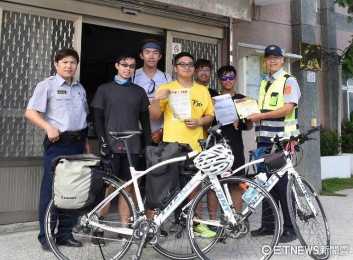 ▲幾名中原大學學生鐵馬騎士,看到楊所長專業熱忱的青春專案宣導深受感動,主動邀請楊所長合影。(圖/台東縣警察局提供)