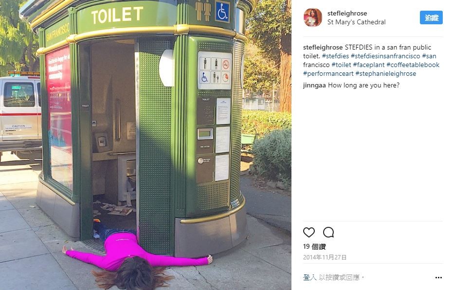 ▲藝術家為了「反自拍」,願意到公廁與尿液親密接觸。(圖/翻攝自IG/stefleighrose,下同。)