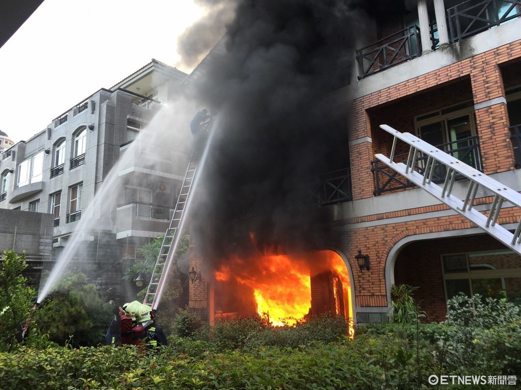 根據消防隊員初步了解,這棟豪宅為4樓建築,1樓及3樓燒損,現場燃燒面積120平方公尺,地下1樓存放去漬油等有機溶劑。至於,確切的起火原因仍待警消進一步調查釐清。