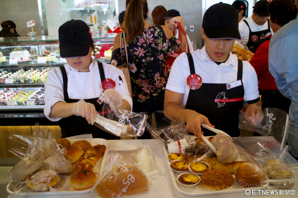 從台灣發跡的連鎖咖啡品牌85度C,全球第1000店進駐德州休士頓中國城,店內除了販售飲料,新鮮現烤的麵包更受歡迎,各種正宗的台式糕點琳琅滿目,迅速成為人氣排隊名店!挺進當地餐飲業一級戰區,早上8點店門口已擠得人山人海,人潮貫穿整座長廊,甘願為這一味付出時間等待,像是賣到翻的巴布羅、芋頭、藍莓麵包,民眾拿起夾子一個接一個放進餐盤,臉上滿足的模樣彷彿找到人生最愛,連當地選美皇后也讚不絕口。