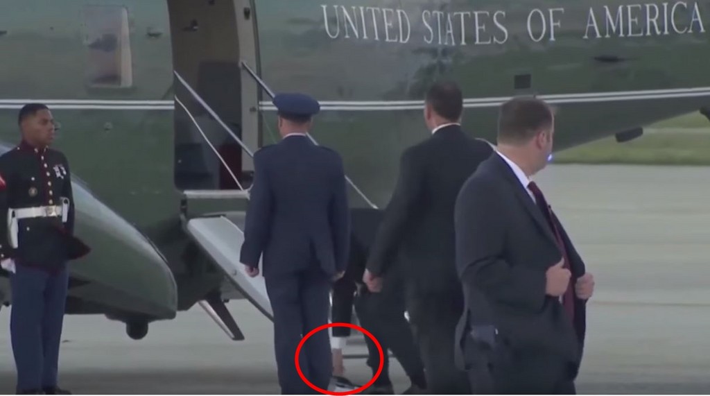 這段影片在網上瘋傳,更引起許多網友討論稱讚。影片中,川普準備登上美國海軍陸戰隊專機「海軍陸戰隊一號」(Marine 1)前,他看見地上有頂的帽子,立即彎下身把帽子撿回,並為這名站在機門口的海軍陸戰隊弟兄戴上。