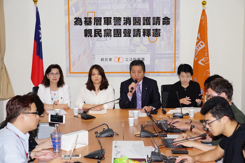 ▲親民黨團召開「為基層軍警消醫護請命,針對不合理年改條文聲請釋憲」記者會。(圖/親民黨團提供)