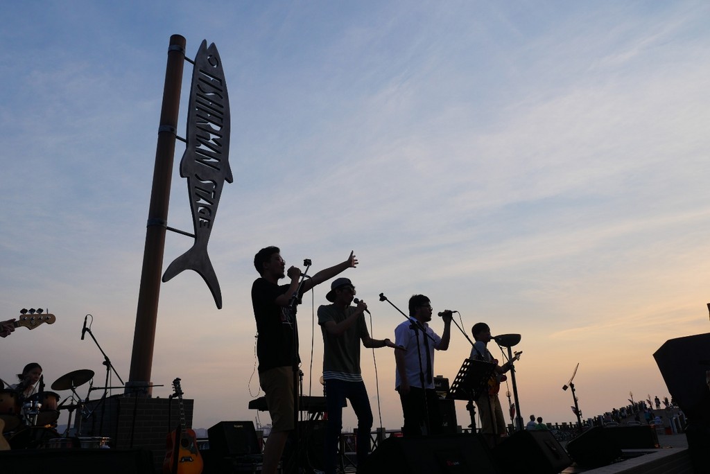▲漁人舞台「夏日原創音樂季」在浪漫的夕陽中開唱。