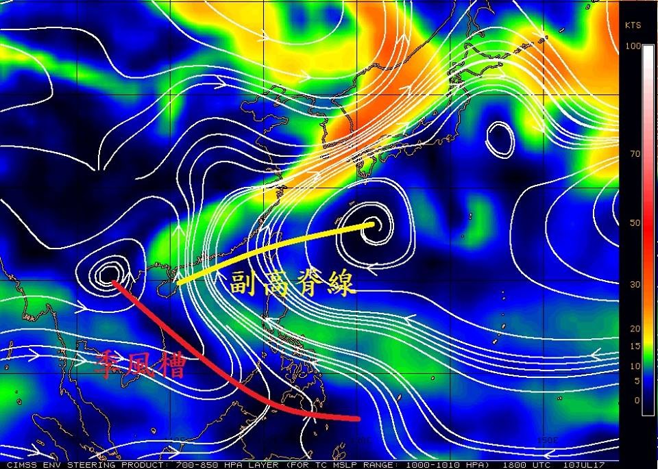 而南海上的低壓槽,基本上就是熱帶、西風交會之間的低壓帶,稱為季風槽,已經開始發展。當季風槽延伸進入菲律賓東側的太平洋赤道區,颱風生成的機率將顯著提升。雖然天氣型態的季節變化有點延遲,但是不會缺席。