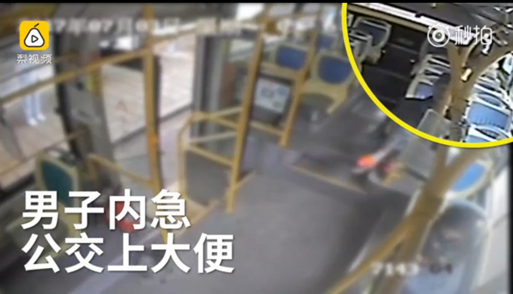 據《雲南網》報導,雲南昆明一名身穿卡其色衣服的中年大叔在3日上午9點36分刷愛心卡上公車,他原本坐在公車的前排位置,當車輛行至東陸橋站時,大叔回頭看了一眼公車的最後一排,然後站起來走到車廂中間,把手裡的推車遞給了同伴,站在原地望了一眼監視器後,掩人耳目地扭動著腰肢,狀似放鬆筋骨,之後從容地走到最後一排,脫褲子蹲在地上拉屎,大約3分鐘後再若無其事地起身走到倒數第三排坐著,直到車子行駛至終點站後,和同伴一同淡定地走下車。