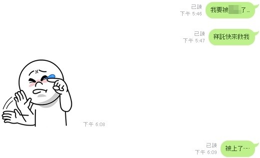 收到少女求救訊息的同學一開始一頭霧水,還以為少女是在開玩笑,氣得她再傳訊「拜託不要廢話,直接報警」、「陌生人啦幹!」同學這時才驚覺出事,連忙報警求助,但卻已經為時已晚,待20分鐘後,少女再度崩潰傳訊至群組「被上了……」。