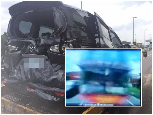 新車頭還掛著紅色彩球,被遊覽車這一撞,車尾凹陷嚴重變形、後車窗也直接破裂爆開,整輛車幾乎被擠扁,車頭也因追撞受損,只剩車牌仍詭異的躲過傷害。目擊民眾接受《東森新聞》採訪時表示,當時遊覽車撞上一輛新車,又再撞前面,應該是停紅燈遊覽車沒注意。