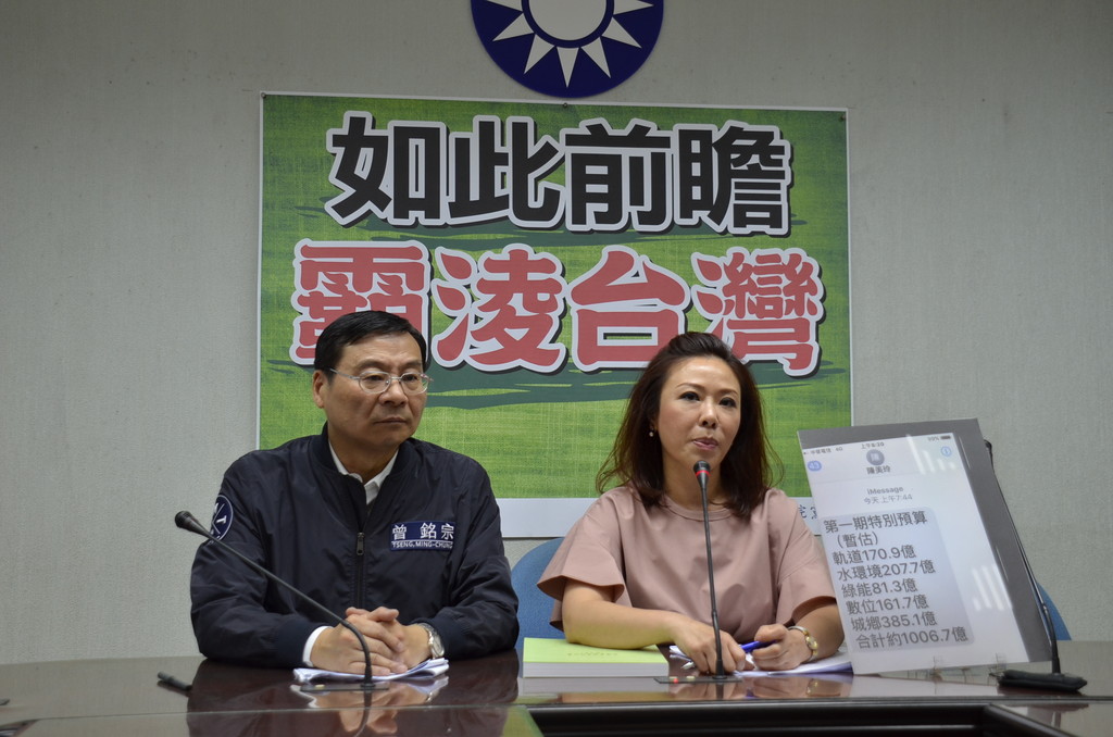 國民黨立委曾銘宗也直言「決策粗糙、作業草率、違反民意」,8項共1089億元前瞻預算,不僅不符合前瞻定義,也不符合預算法89條規定,更不是國家當前最急迫需要的,「全民會接受嗎?」國民黨團絕對會強力監督,為民眾看緊荷包。