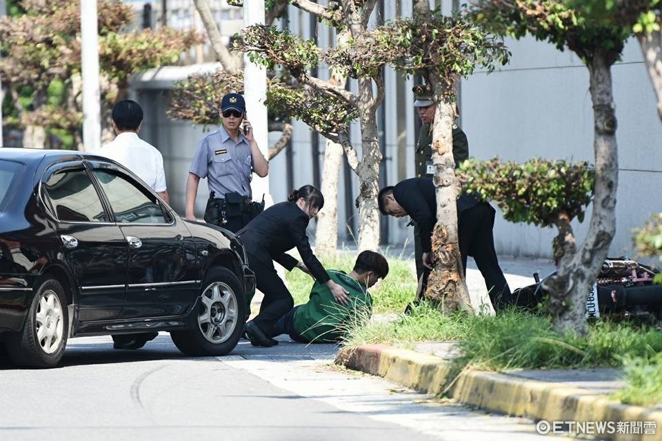 12日上午9點半左右,歡迎巴拉圭總統卡提斯的軍禮典禮開始前,總統府貴陽街側,一輛機車突然呼嘯而過,隨後便聽到「碰!」的一聲,機車與準備右轉進總統府的外交部公務車發生車禍,機車騎士倒地無法動彈,左手血流不止;但騎士傷勢似乎並不嚴重,隨後拿起手機撥打電話。由於維安警力、國安人員部滿總統府周圍,車禍發生後旋即聚集處理善後,救護車到場後將機車騎士送醫。