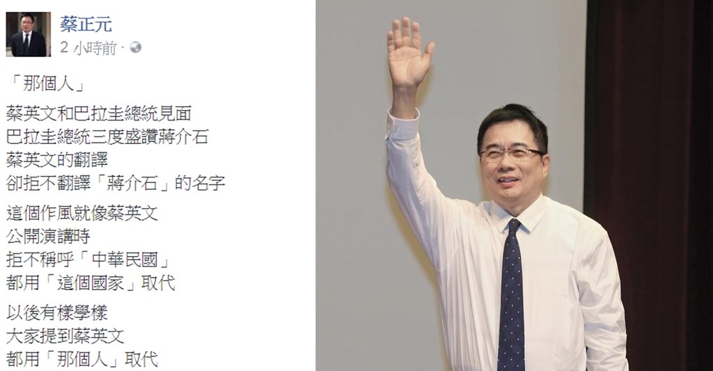▲蔡正元在臉書上建議,以後都稱呼總統「那個人」。(圖/翻攝自蔡正元臉書)