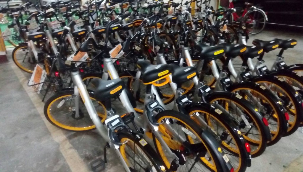 ▲北市交通局強力取締obike違規,被拖吊之obike目前停放在龍門國中地下停車場。(圖/台北市交通局提供)