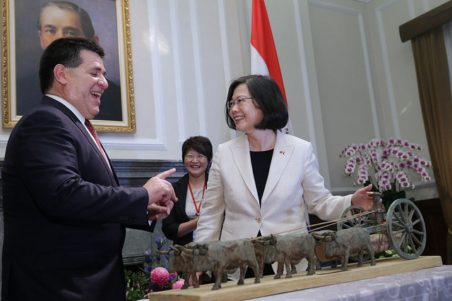 ▲翻譯官王秀娟(中)負責在總統蔡英文與巴拉圭總統會面時口譯。(圖/總統府提供)