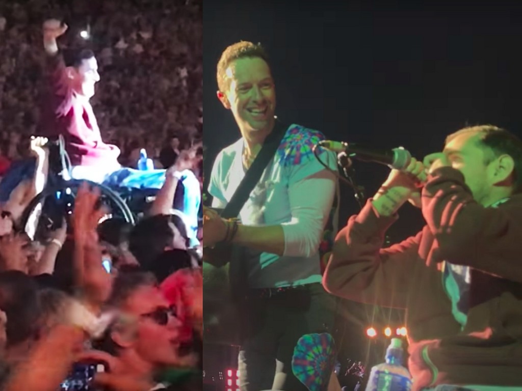 ▲酷玩樂團在都柏林開唱,邀請輪椅粉絲上台的畫面超感人!(圖/翻攝自YouTube,以下同)