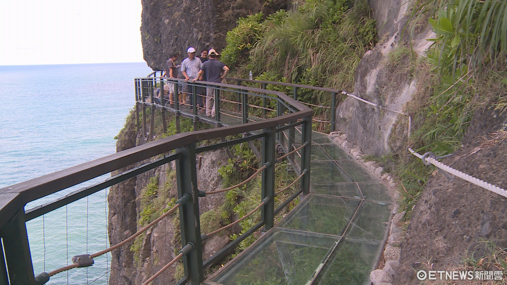豐濱鄉公所在台11線新豐隧道外的「親不知子斷崖」峭壁上,採用強化透明玻璃和鋼骨打造垂直懸空步道,海天美景盡收眼底。