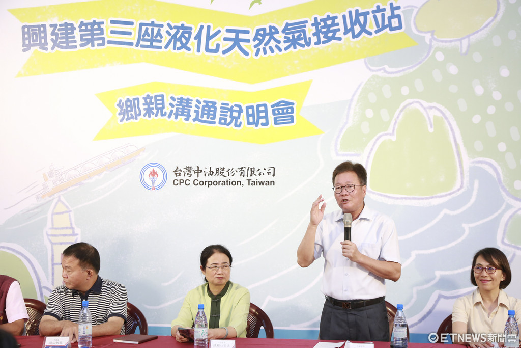 ▲中油要在桃園觀音興建第三座天然氣接收站,中油董事長陳金德(右2)特地率領團隊與鄉親們溝通說明。(圖/記者黃克翔攝,以下同)
