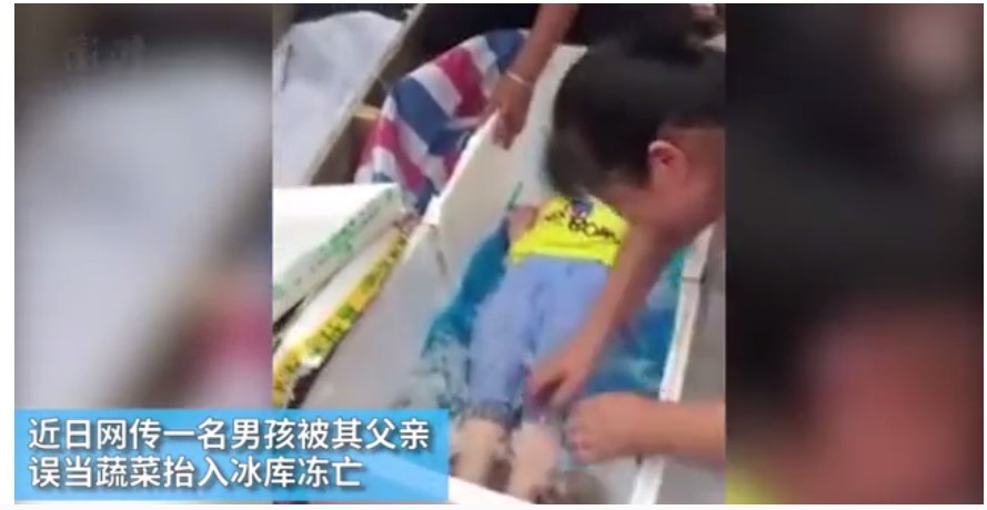 網路上近來流傳一支名為「男童被當蔬菜凍死」的影片,可看到一名小男孩躺在保麗龍盒內,旁邊有一名婦人正在用冰塊鋪蓋,詭異的畫面引起大陸網友熱烈討論,還有人認為男童其實是是被人口販子用冰塊冷藏,要被送去其他地方賣器官;還有人認為,男童不小心在箱子內睡著了,結果被當成蔬菜送去冷藏而凍死。