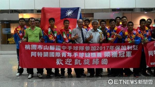 ▲桃園市山腳國中手球隊遠赴保加利亞參賽奪冠返國。(圖/取自劉勝全臉書)