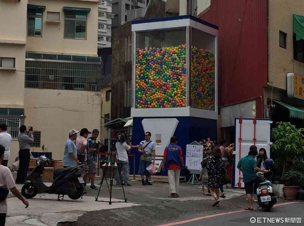 ▲台南市中西區衛民街貨櫃市集啟用巨型扭蛋機,吸引不少遊客排隊,同時也造成周邊交通堵塞等問題,市府將依法加強輔導。(圖/市府提供)