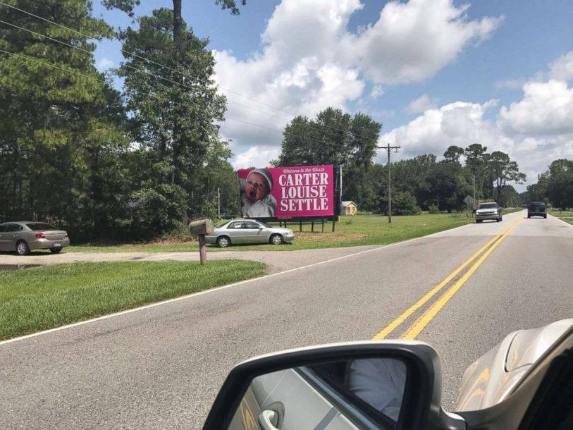 美國南卡羅來納州公路旁日前豎立一塊巨型看板,粉紅廣告牌上的女嬰可愛地張大嘴,像是和所有用路人打招呼:我出生啦!究竟這名卡特(Carter)女嬰是誰?才剛出世就獲得家族如此愛戴。