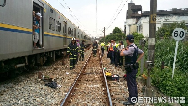 ▲男子搶越鶯歌至桃園間平交道,警方進行搶救。(圖/桃園消防局提供)