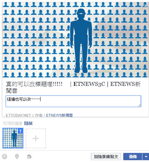 ▲若是透過臉書粉絲專頁發佈「連結」,使用者可以直接修改連結顯示的資訊。(圖/翻攝Facebook)