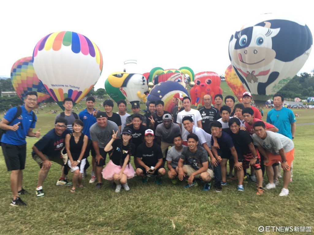 ▲參加東岸聯盟棒球邀請賽的日本高知鬥犬隊,受邀參觀在鹿野高台的熱氣球嘉年華活動。(圖/台東縣政府提供 下同)
