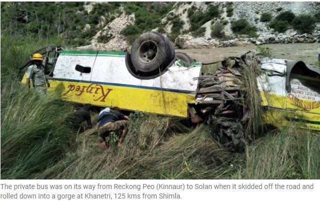 印度北部喜馬偕爾邦(Himachal Pradesh)20日發生巴士墜谷意外,造成28名乘客死亡,另有8人受輕重傷。