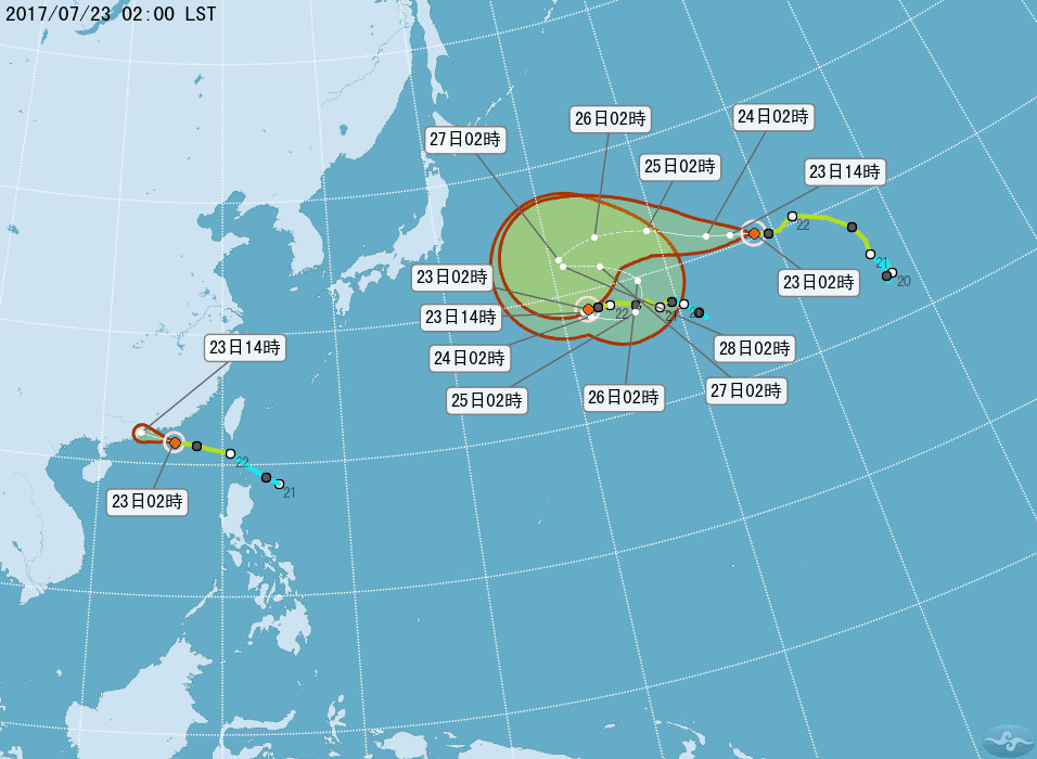 ▼目前在太平洋的3個颱風都對台灣沒有直接影響。