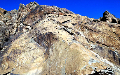 走進賀蘭山岩畫景區,在裸露的岩石表面,有形象生動的動物圖案、顆粒飽滿的農作物,有神態矯健的騎士、怪異的人面像,還有狩獵、放牧、舞蹈等場景,以及各種神秘符號。