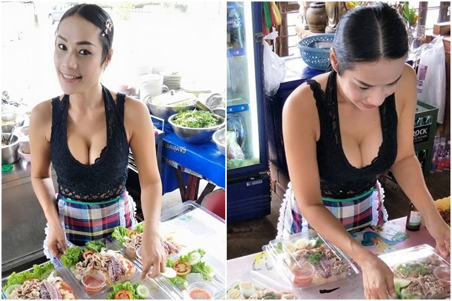 泰國尖竹汶府(Chanthaburi)一家釀豆腐粿條店的麵攤老闆娘近日在網路上爆紅,因為她在煮麵時穿得非常火辣,性感的身材加上大膽誘惑風格,讓當地不少民眾光顧麵攤後都將她的照片上傳至社群平台,一夕之間變成網紅。