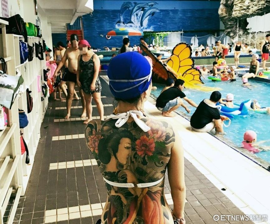 ▲刺青正妹陳茹茹去泳池游泳,展露好身材+霸氣美背,但卻很鬱悶的說:「為何小朋友都嚇跑了,我又沒怎樣。」(圖/網友陳茹茹授權使用)