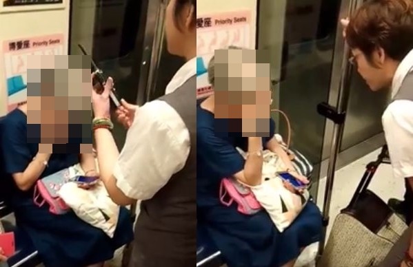▲捷運人員正在跟老阿婆溝通協調。(圖/翻攝自爆料公社)