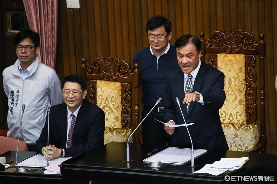 ▲立法院長蘇嘉全之前在議場內也遭國民黨立委丟水球。(資料照/記者周宸亘攝)