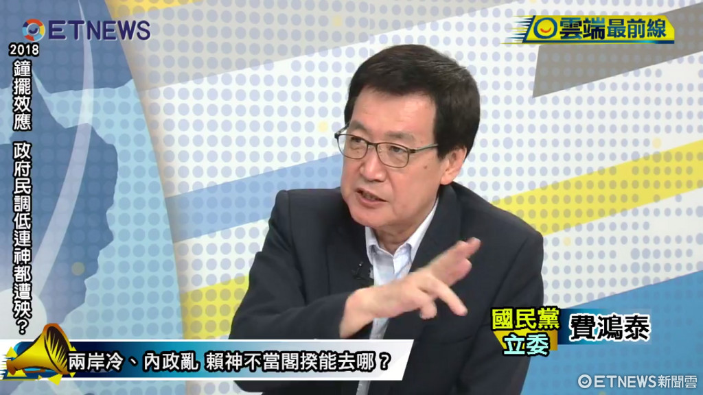 費鴻泰今日參與《雲端最前線》討論「2018大選的鐘擺效應!政府民調低連神都遭殃 小英在等什麼?」主持人楊文嘉提問,國民黨六都只剩下新北市,2018該怎麼打、該怎麼守?費鴻泰對於吳敦義大動作宴請藍委表示肯定,他說這週準主席吳敦義已經動起來,「只要吳敦義一心只想打贏這場選戰,為台灣百姓謀福利,不要把自己擺在第一位,我覺得是有可能的。」