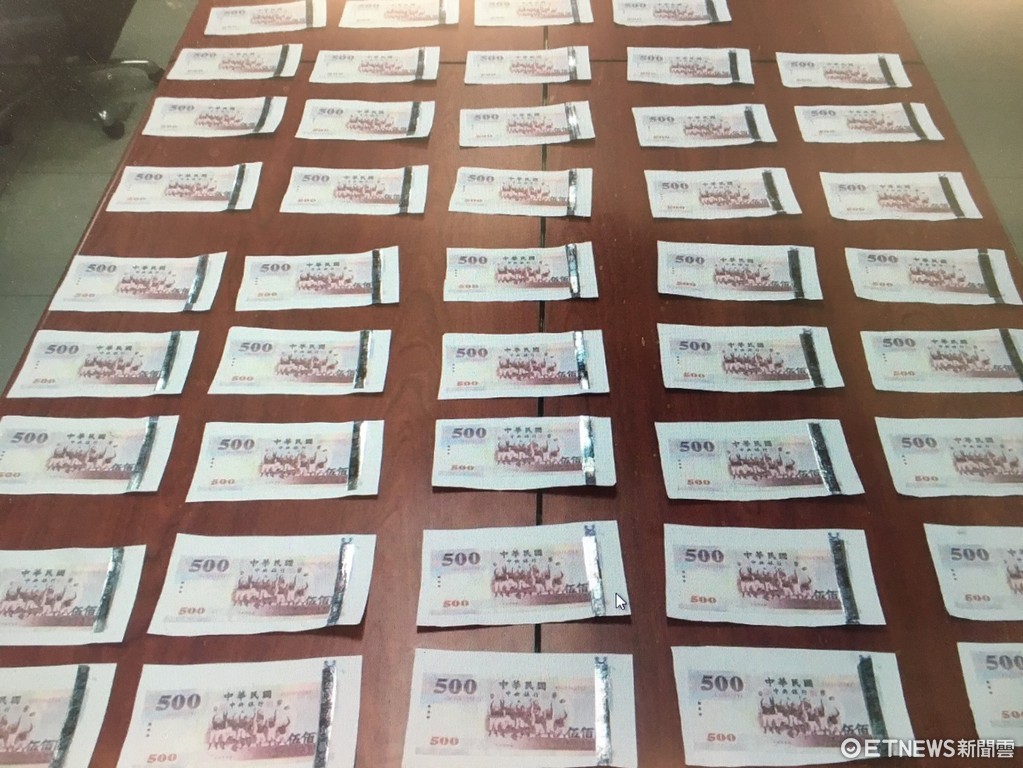 ▲劉姓運將找精明女會計偽鈔遭揭穿;圖為查扣的44張500元偽鈔。(圖/記者陳豐德翻攝)