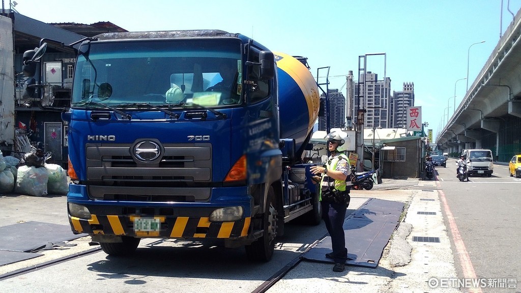 ▲世大運選手村周遭大車多,警方取締違規砂石車。(圖/記者陳豐德翻攝)