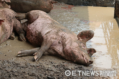▲台灣動物社會研究會現場直擊,發現幾乎所有肥育中的豬隻,全身都沾滿糞便,多數豬隻熱到躺在地上一動也不動、毫無活力。(圖/台灣動物研究會提供,下同)