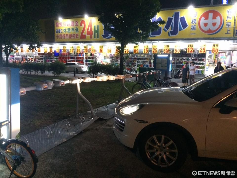 ▲保時捷撞毀C-bike站體後,以千元和解不成疑酒駕肇事逃逸。(圖/記者陳豐德翻攝,民眾授權提供)