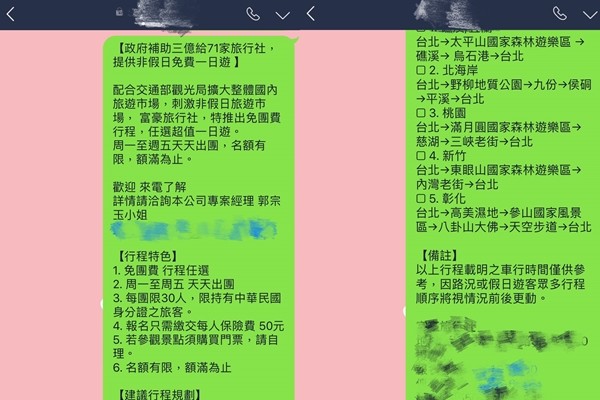▲觀光局澄清,3億元國旅補助早已結束,富豪旅行社也喊冤,謠言不知從誰被轉傳出去的。(圖/網友提供)