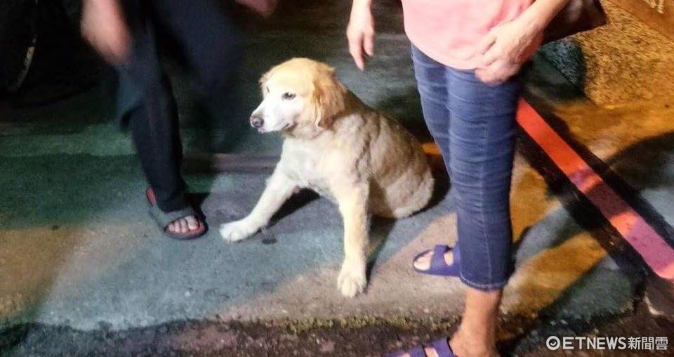 ▲黃金獵犬被撞傷癱坐在地。(圖/記者謝孟儒翻攝,下同)