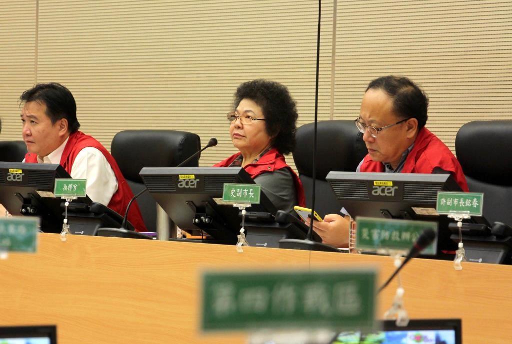 ▲尼莎風雨到!陳菊坐鎮一級開設:高雄市29日上班上課。(圖/高雄市府)