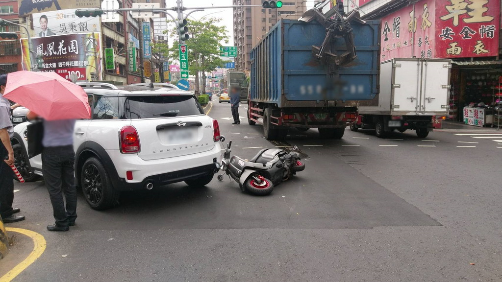 陳姓女騎士(21歲)28日下午2時許,行經新北市新莊區中正路往桃園方向時,在中港路口疑似未注意前方MINI準備迴轉,從後方擦撞車尾後人車倒地,又遭右側的大貨車左後輪輾壓下半身拖行,造成騎士右腳骨開放性骨折、骨盆變形,被緊急送往亞東醫院救治,所幸無生命危險。