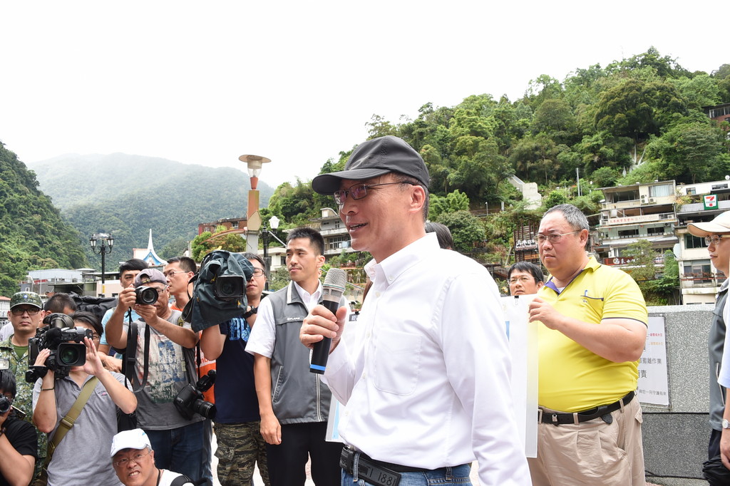 ▲林全29日與朱立倫視察烏來地區防颱準備。(圖片影音/行政院提供,下同)