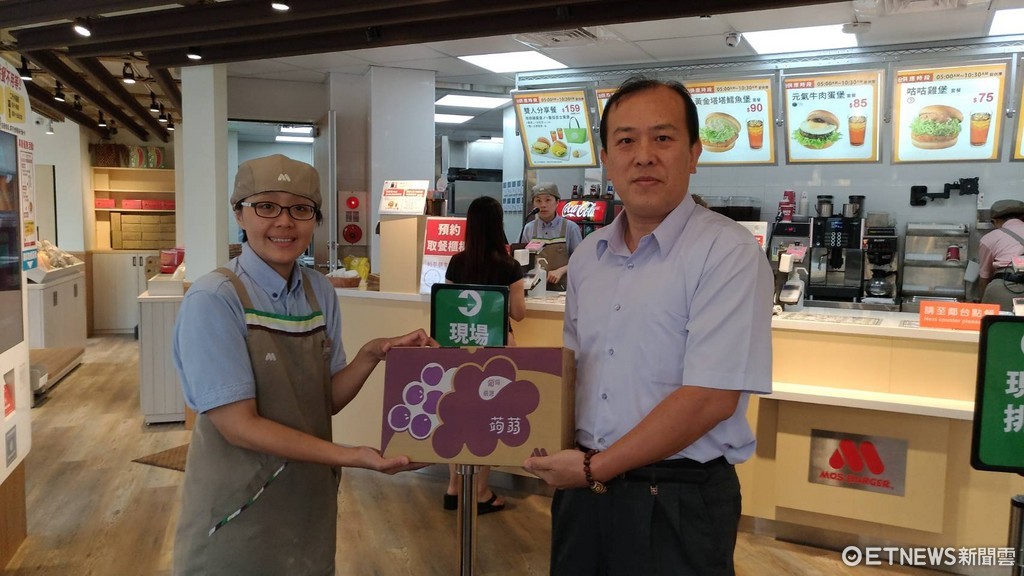 ▲東元集團由摩斯漢堡台東新生店店長代為轉贈水果蒟蒻,台東縣消防局秘書林建誠代表消防局及應變中心工作同仁前往領取。(圖/台東縣政府提供)